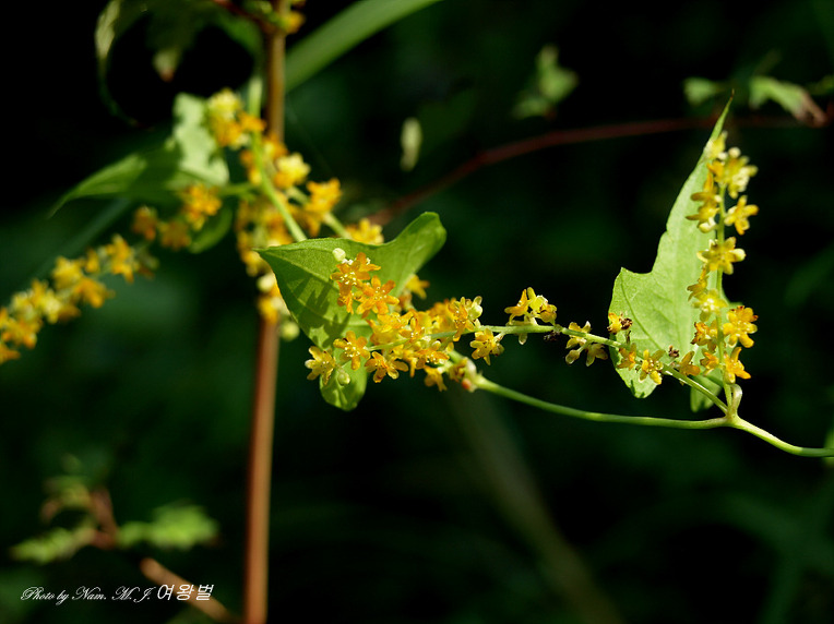 남쪽 섬지역 숲 가장자리에는 단풍마 덩굴이 한창 노랗게 꽃을 피우고 있다.