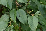 예저 또는 원저이고 양면에 털이 있으며 뒷면의 털은 특히 다갈색이고 가장자리에 예리하고 작은 톱니가 있으며 측맥이 뚜렷하다.