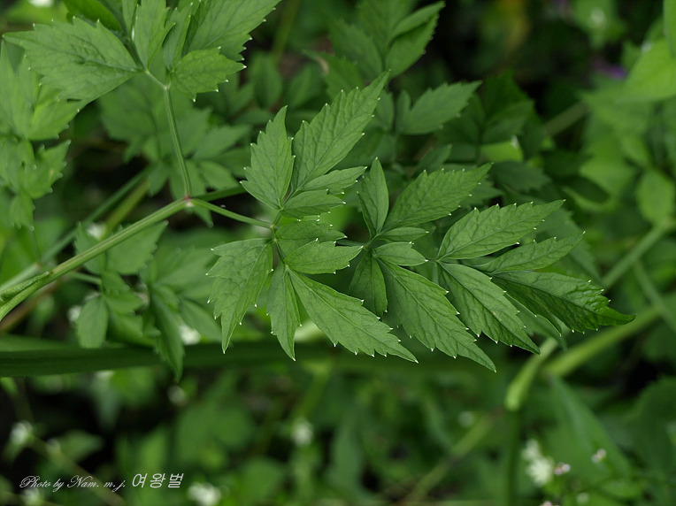3.잎은 다소 두껍고 엽연에는 세거치(가는 톱니)가 있다.-----------------------------묏미나리