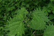 가장자리에 규칙적이고 예리한 톱니가 있으며 표면은 맥위가 때로 거칠어지고 뒷면은 흰빛이 돌며 때로 맥위와 가장자리에 잔털이 있다. 윗부분의 잎은 작고 엽초는 굵어져서 도란형 또는 긴 타원형으로 된다.
