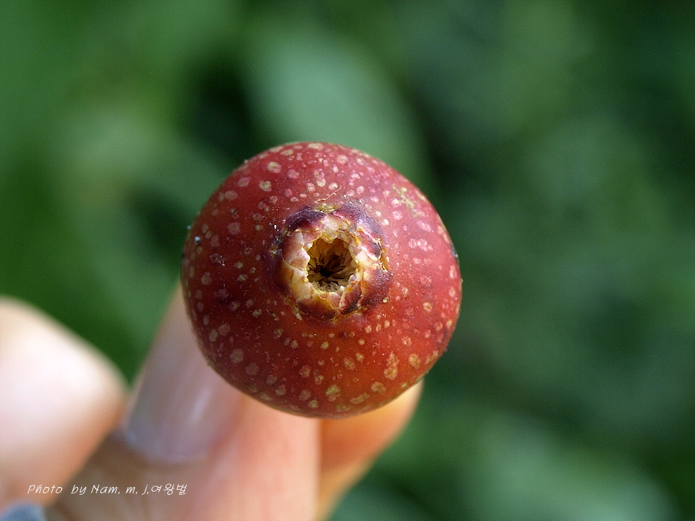 나중에 열매 단면을 루뻬로 들여다 본 꽃동무가 벌레집이더란다.