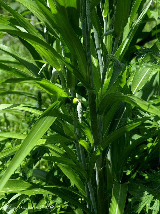 단양에서 만났던 율무는 열매가 거의 늘어져 있는데 이 녀석은 열매가 거의 꼿꼿하게 선 형태로 익고 있다