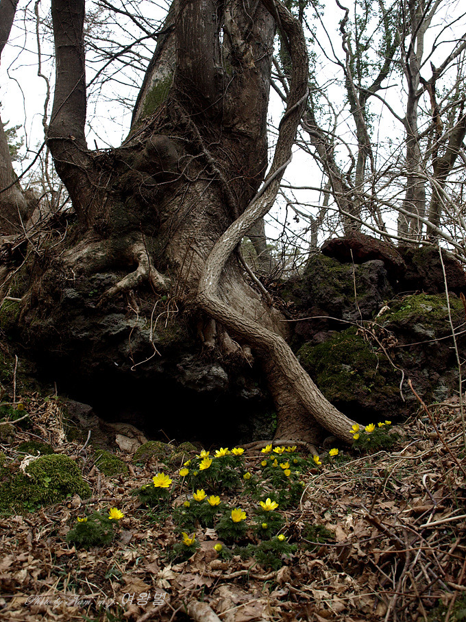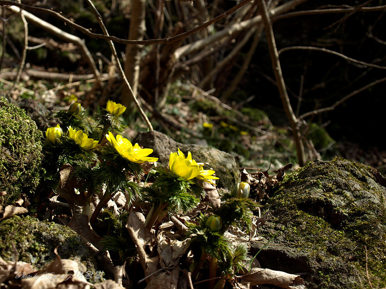 자잘한 가지가 엉긴 관목 아래 세복수초가 흐드러지게 피었다.