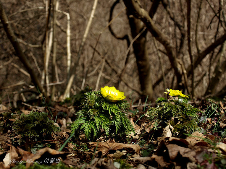 복수초가 개화 할 때는 아직 언 땅이 풀리지 않은 곳이 있을 만큼의 추위가 남아 있는 시기이다.