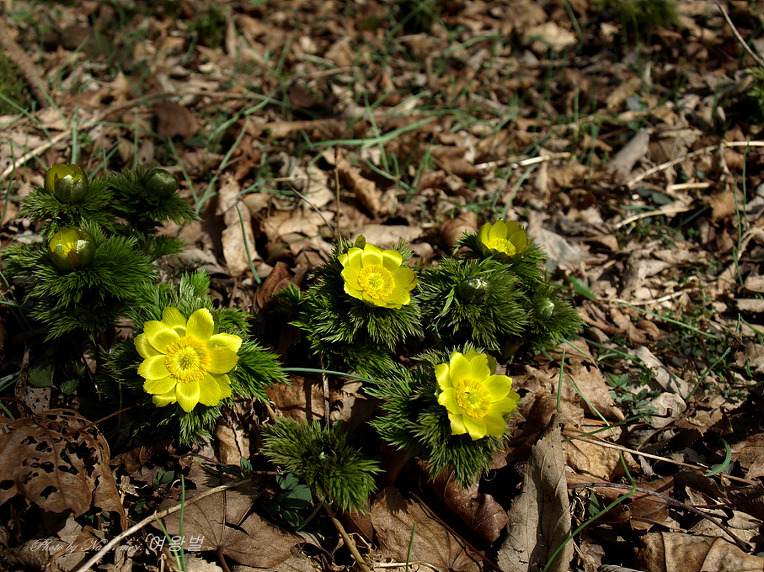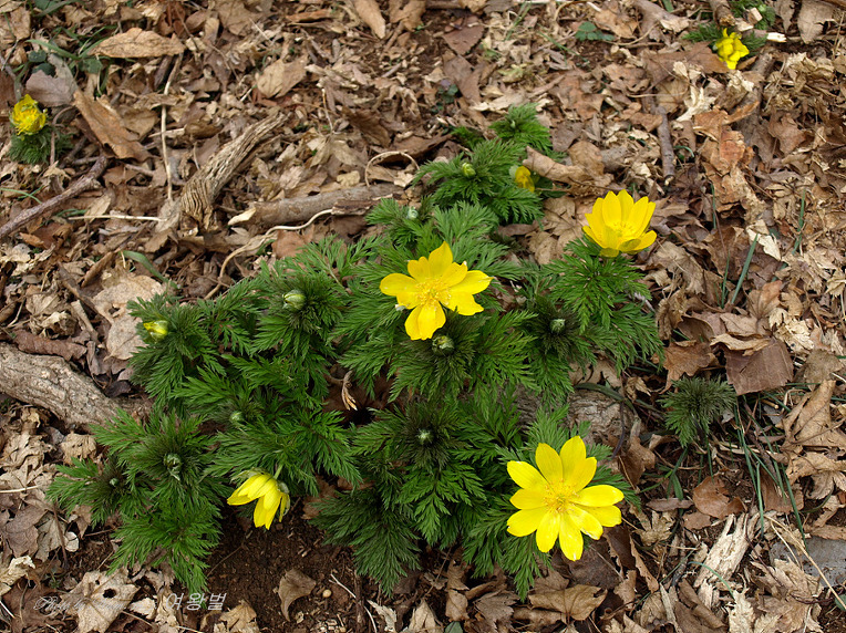 벌써 잎이 넌들거리는 녀석들도 보인다. 잎이 매우 가늘게 찢어져서 세복수초라 한다.