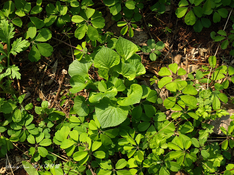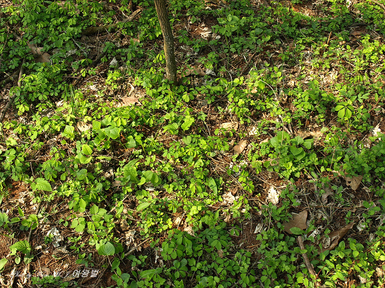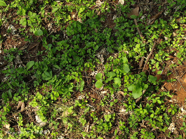 함몰 지역 같은 곳에다가 주변에 큰 나무들이 듬성듬성 있고 으름덩굴 어린 싹들이 많이 보이는데