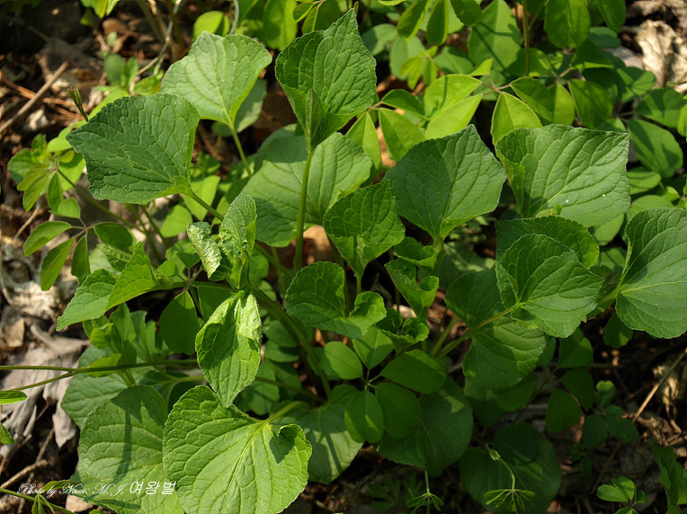 원줄기는 꽃이 진 다음 높이가 15-30cm에 달하며, 원줄기 끝에 엽병이 거의 없는 1쌍의 대생엽이 달리는데