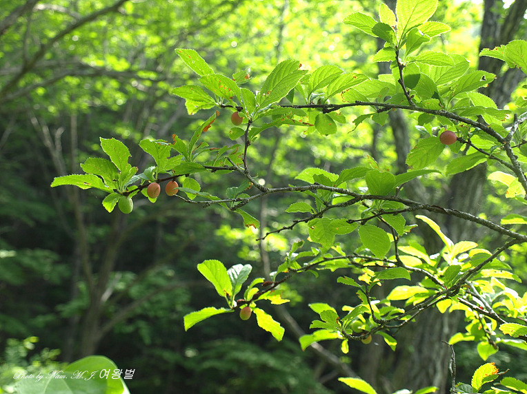 다른 녀석을 보러 힘들게 올랐던 산 자락에 복사앵도나무가 곱게 열매를 익히고 있다.