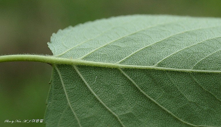 잎 뒷면 맥 위 뿐만 아니라 엽신에도 잔털이 밀생하고 있다.