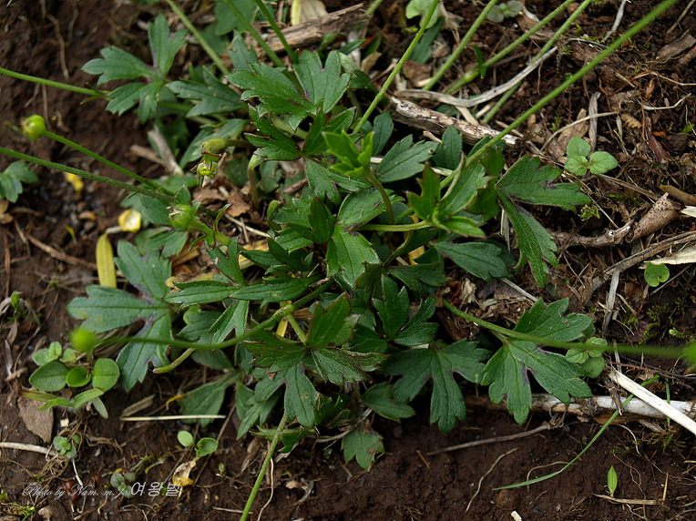 꽃줄기가 옆으로 비스듬하게 퍼지는 스타일이라 미나리아재비로 보기도 어렵다
