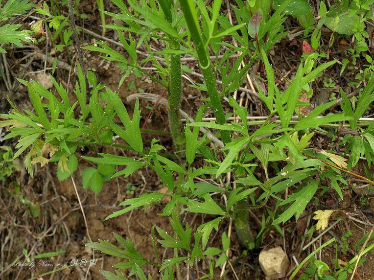 높이 50-100cm이고 밑부분에 퍼진 털이 있으며 윗부분에 가지가 갈라지고 털이 적다.