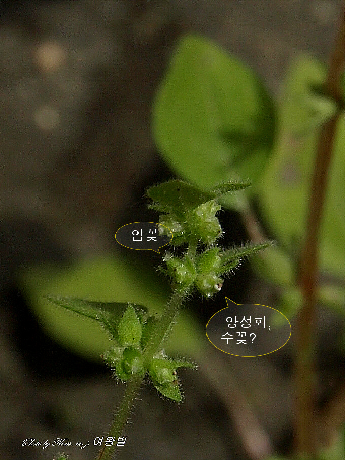 헌데 꽃의 갈라진 화피는 확인이 가능한데 암꽃(양성화)와 수꽃의 확인이 불분명하다.