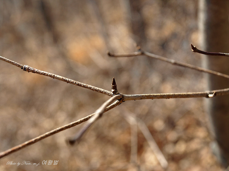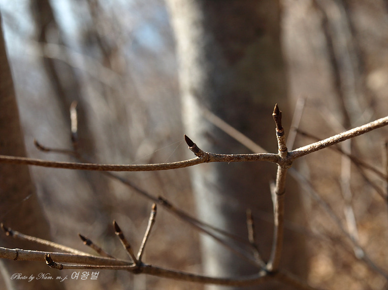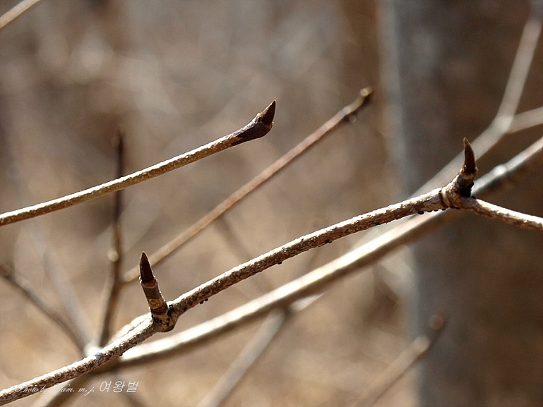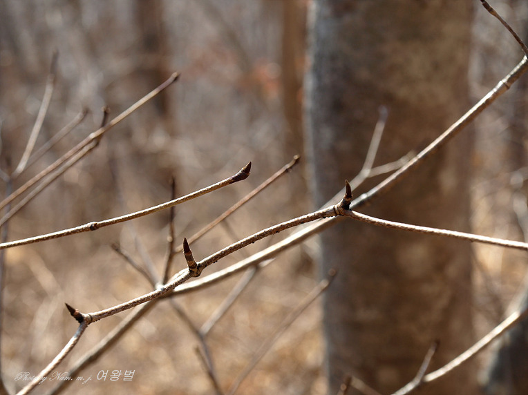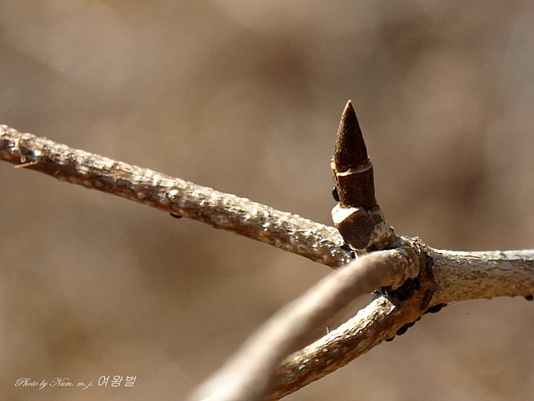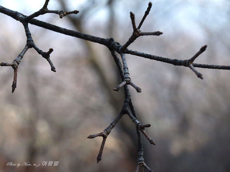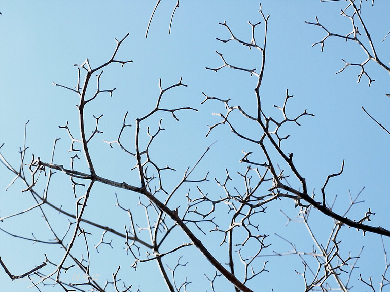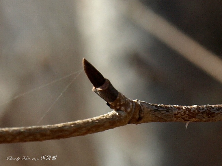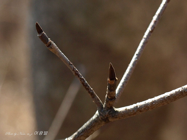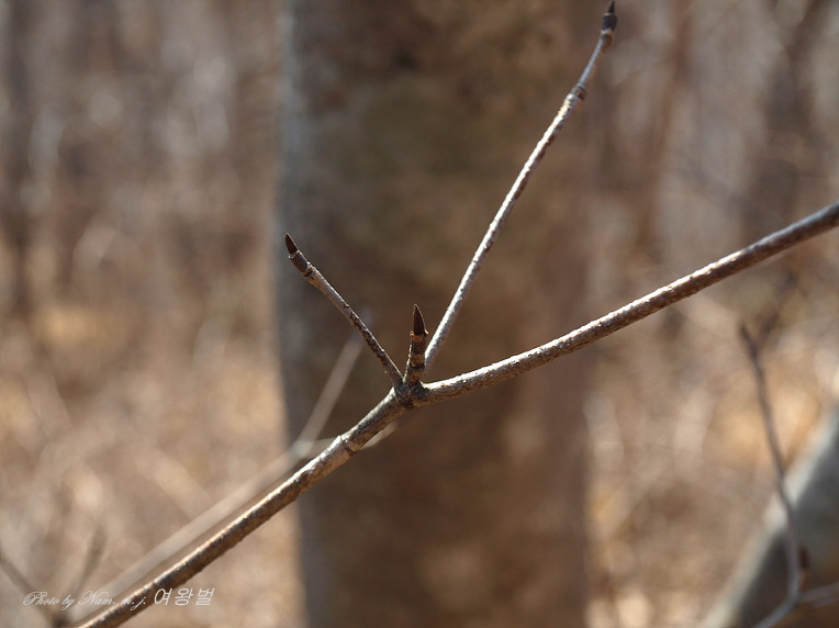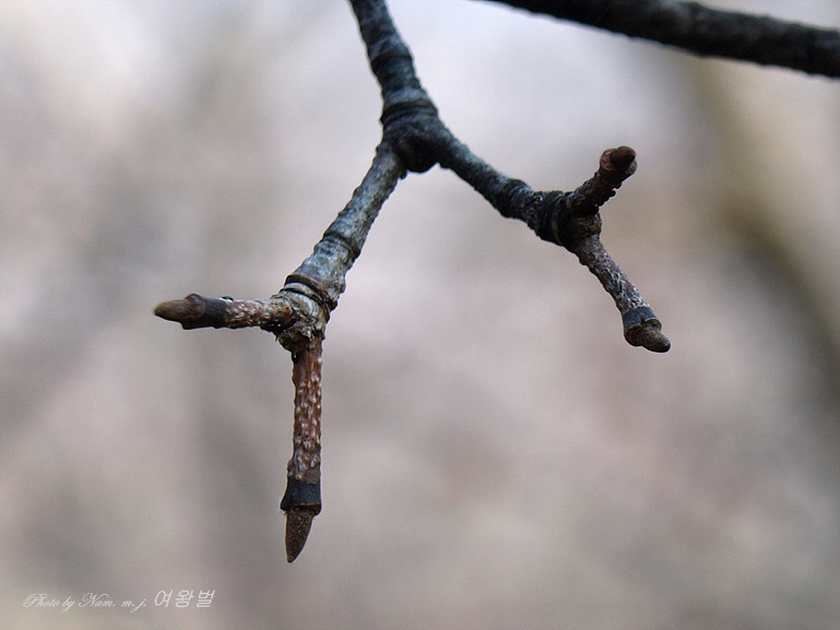 가지 모양이 질서있게 차상(Y자 모양)으로 갈라져 있고 송곳처럼 뾰족한 동아 끝 모습이 참 인상적이다.