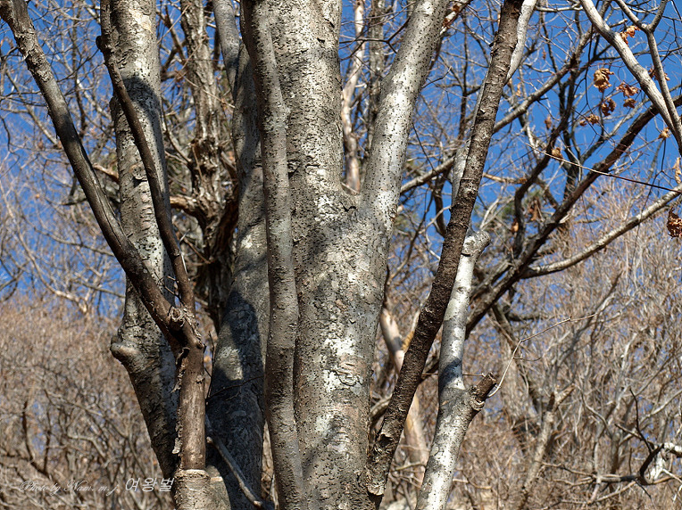 남부지역 산의 겨울나무들은 수피가 비슷비슷하여 이름 불러주기 쉽지가 않다.