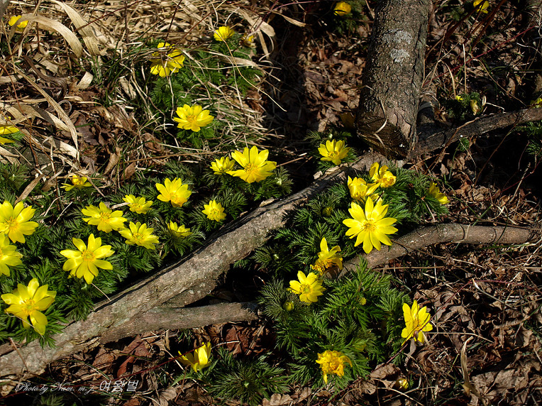 2월 하순에 다녀 올 때는 볕이 잘 드는 오름 사면에 마악 세복수초 개화가 시작 되고 있었는데