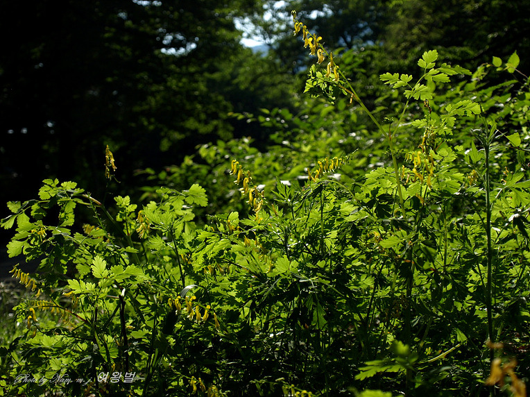 사찰 주변 개울 옆 숲 아래에는 온통 노랗게 피어 있길래 염주괴불주머니려니 했다.