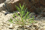 물기 없는 건조한 노지에 퍼져 있었는데 줄기가 사방으로 퍼져 있는 모습이 꽃받이 비슷하였다.