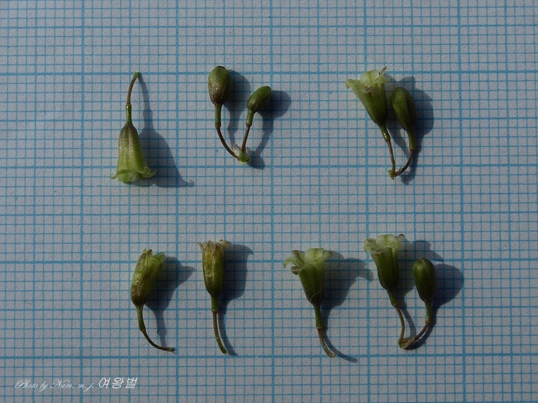 꽃잎이 뒤로 제껴지고 화경의 길이가 4~5mm 정도 사이인 것 같다. 엽상지는 드물게 달려 있고 약간 휘어져 있다.