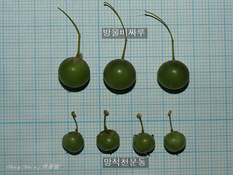 방울비짜루와 망적천문동의 열매자루 길이가 이렇게 차이가 많다.