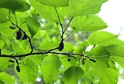 잎은 어긋나며 길이 3-4㎝의 타원형 또는 도란형으로 잎의 상부에 4-5개의 결각상톱니가 있다.