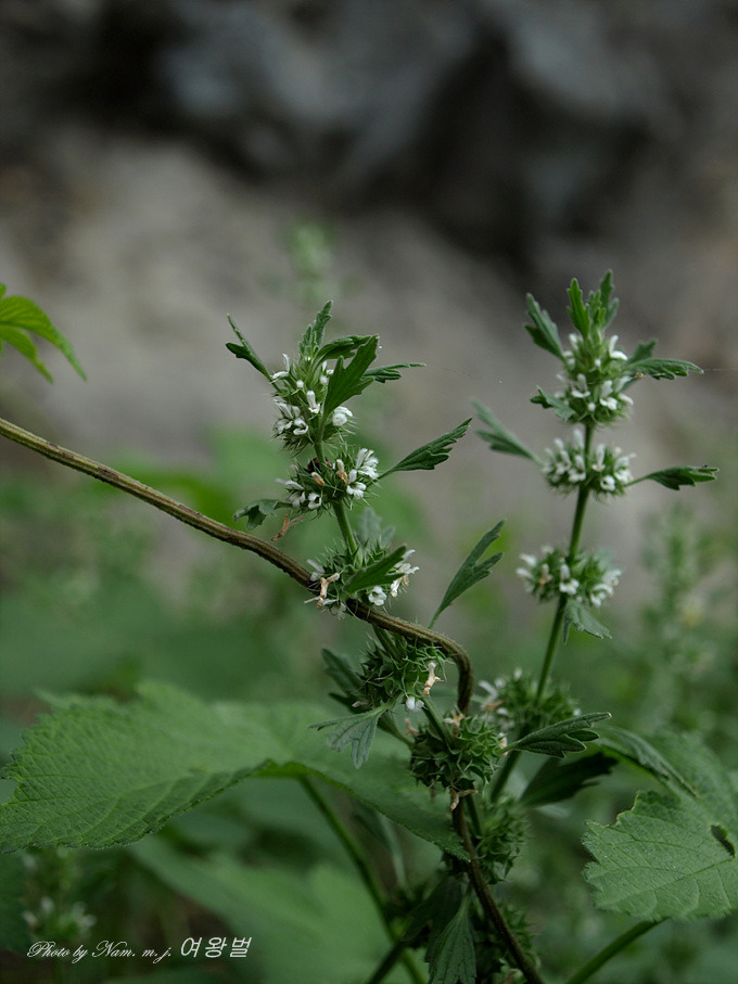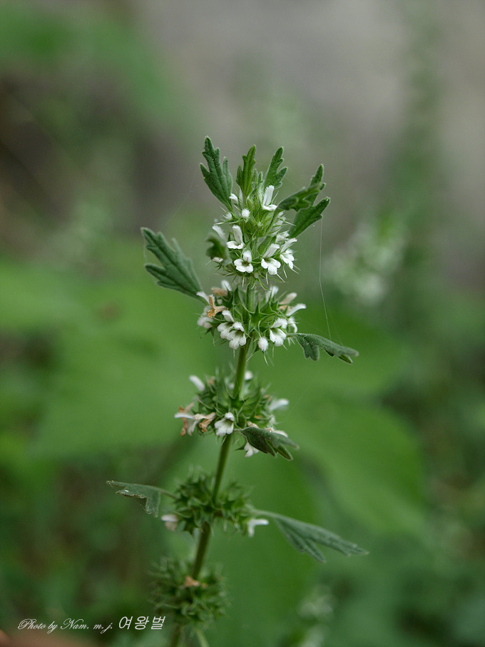 잎과 줄기에 짧은 털이 밀생하고 잎이 익모초를 닮았다.