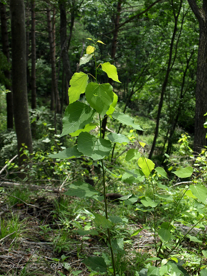 산 계곡부 사면에서 보이는 녀석은 잎 뒷면이 흰색인 은사시나무에 비하여 잎 뒷면이 녹색이다