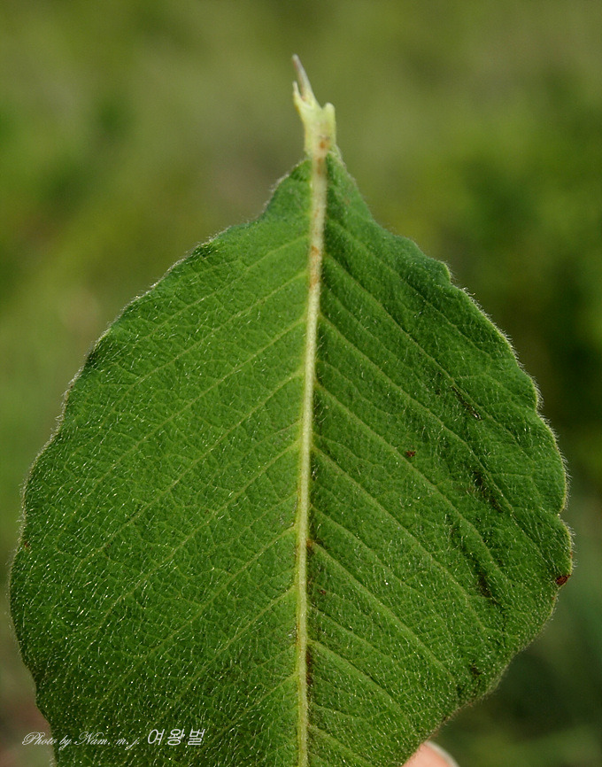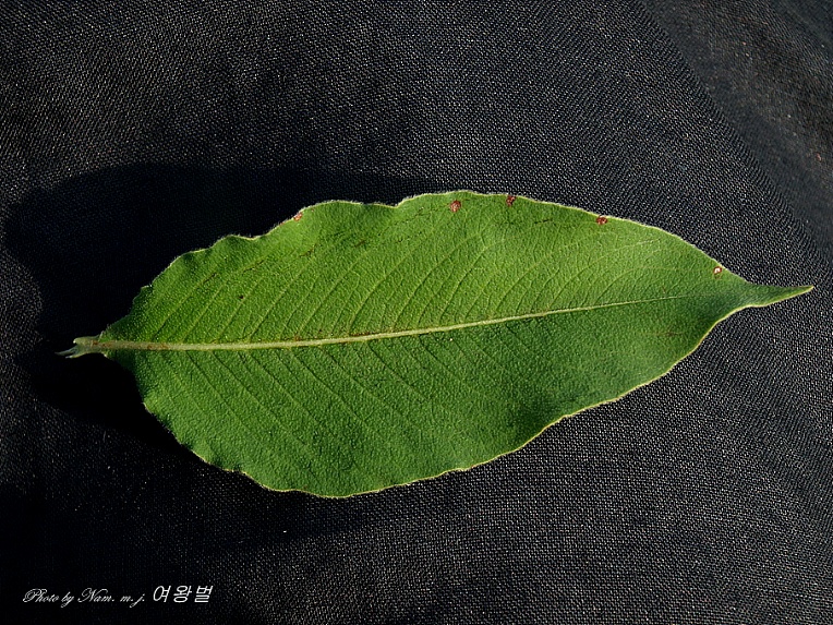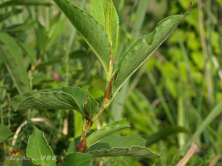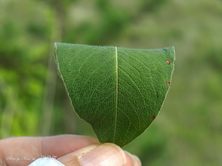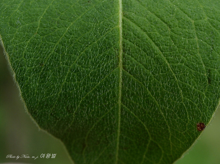 난상 피침형의 잎은 표면과 뒷면에 짧은털이 밀생하고 있다