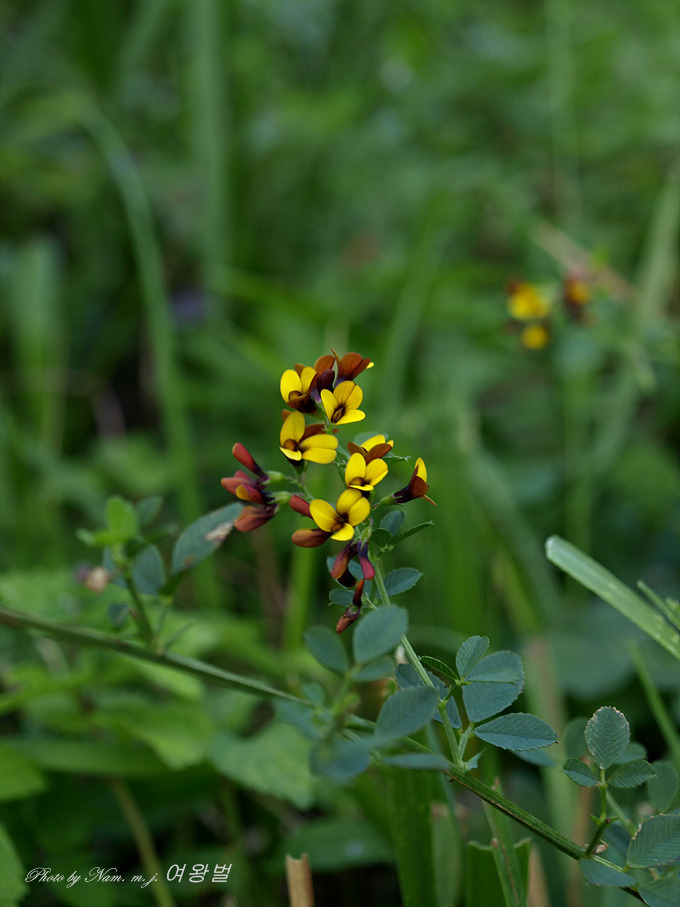 헌데 제주에서 만난 노랑개자리의 꽃잎 바깥쪽에 붉은색이 강하고 잎의 크기가 더 작고 전초가 왜소하였다.