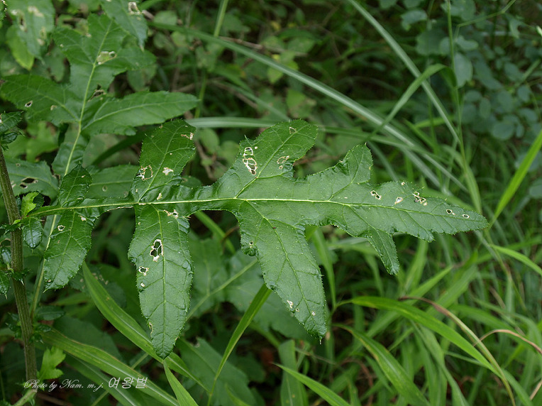 잎의 모양이 바늘엉겅퀴처럼 결각이 져 있고 크고 억센 가시가 나 있다.