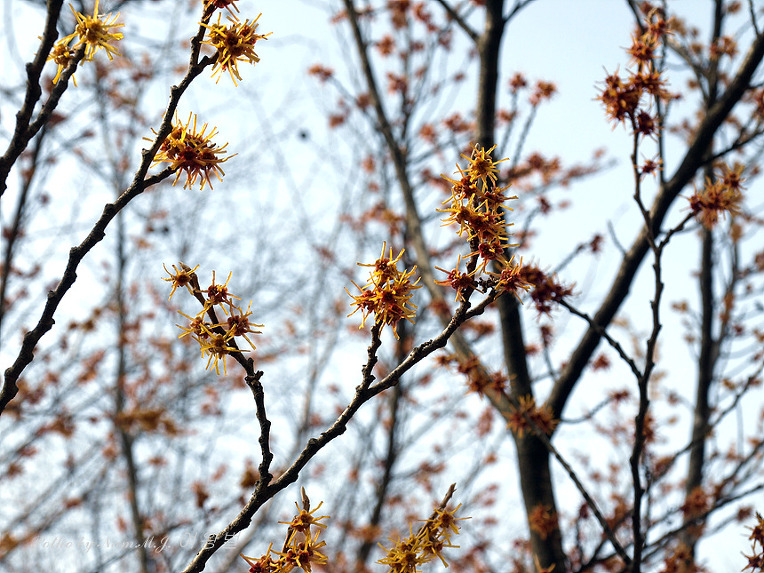 이른 봄 잎이 나기 전에 촉수같이 긴 꽃잎을 이렇게 길다랗게 펼치고 꽃을 피운다.