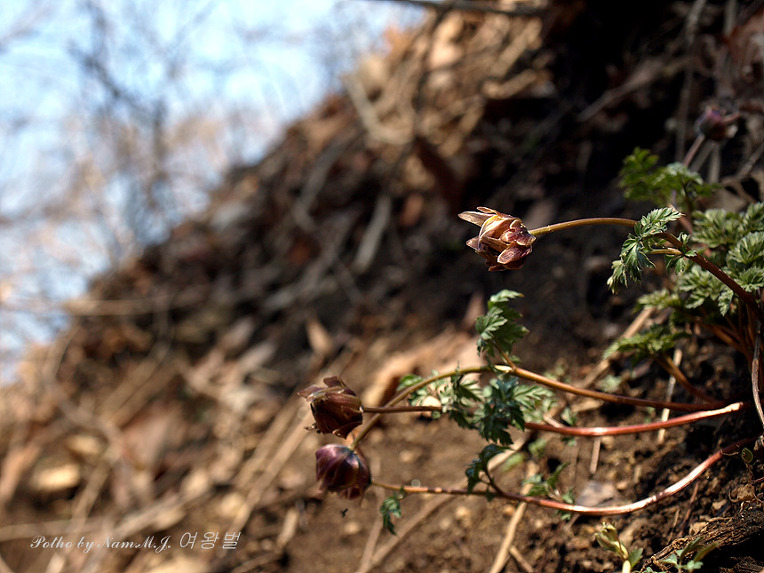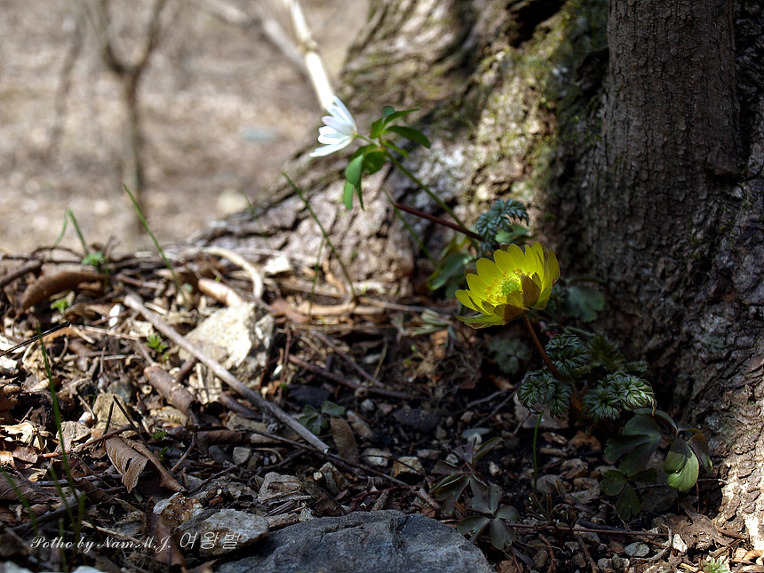 작년 이른 봄에 이 곳에 들렀다가 봉오리를 마악 내밀고 있던 복수초로 보이는 녀석을 담아 온 적이 있엇다.