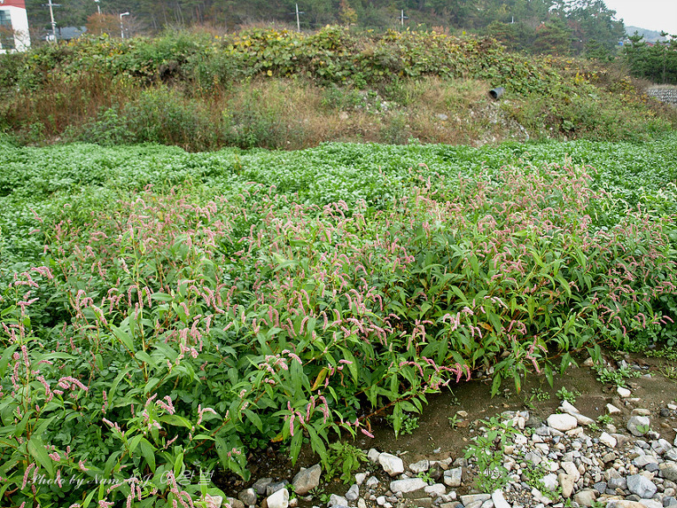 물냉이와 함께 바다로 흘러드는 하천을 꽉 채우고 있던 명아자여뀌다