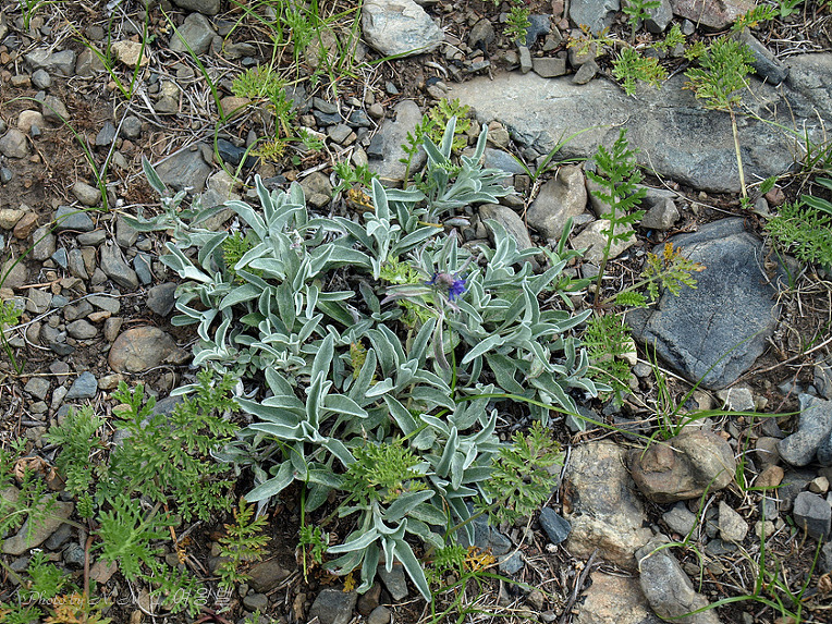 다년생 초본,키는 15~40cm. 잎 양면, 줄기에 가는 은색 융모로 가득하며 6월~8월에 푸른색의 꽃이 핀다..