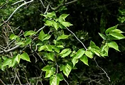 잎 끝이 갈라지는 특징이 있지만 큰 나무는 한 개체에서도 갈라지는 잎과 갈라지지 않은 모습도 하고 있다.