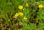 들괭이밥은 포복성 줄기가 짧거나 없지만 선괭이밥은 땅 위나 땅속으로 포복성줄기가 길게 벋는 특징이 있다.