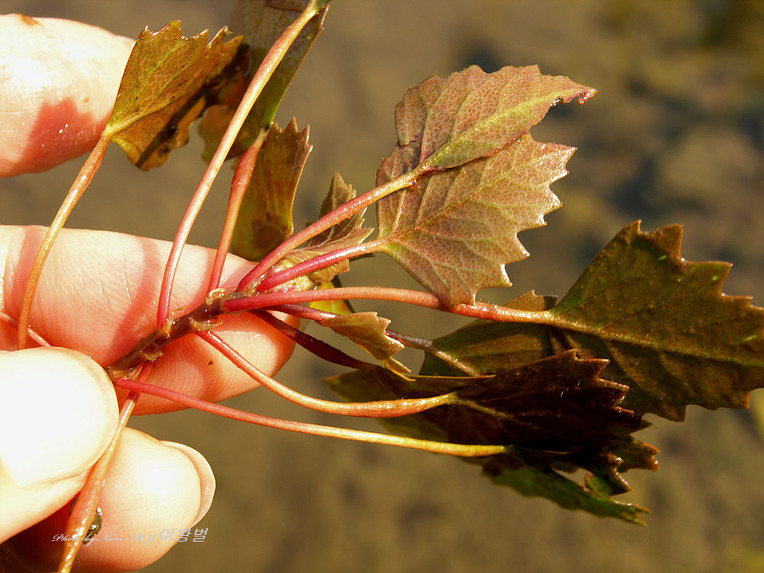혹시나 하면서 한 포기 건져서 잎자루의 털을 확인하는데 짧다. 반갑게도 애기마름이다.
