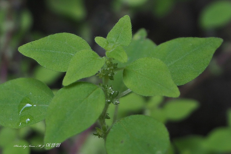꽃은 잡성으로 8월에 피며 녹색이고 엽액에 2-3개씩 달리며 양성화와 수꽃의 화피가 3-4개로 깊게 갈라진다.