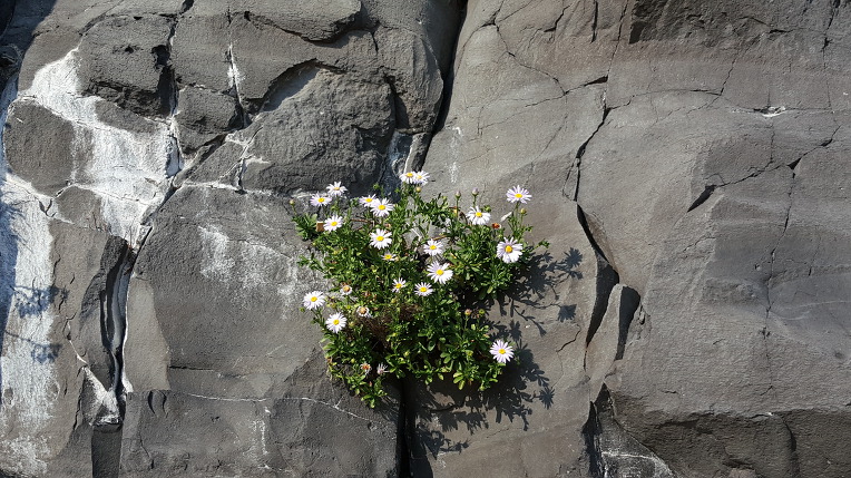 산책로를 내려서 해안으로 들어서자 커다랗게 꽃을 피운 쑥부쟁이속 녀석이 보인다