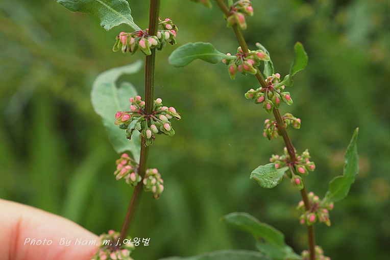 꽃은 10~20개로 원추화서에 윤생한다. 아마도 국내에 자생하는 소리쟁이속 중에서 열매가 가장 작을 것이다.