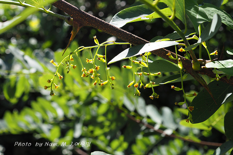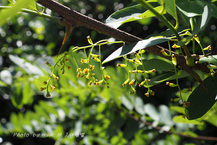 잎자루 기부에 1쌍의 돌기가 있고 화색이 짙은 황색이다.