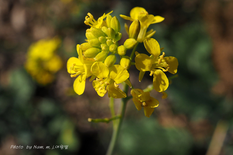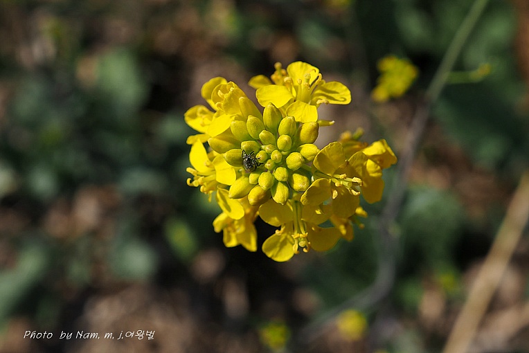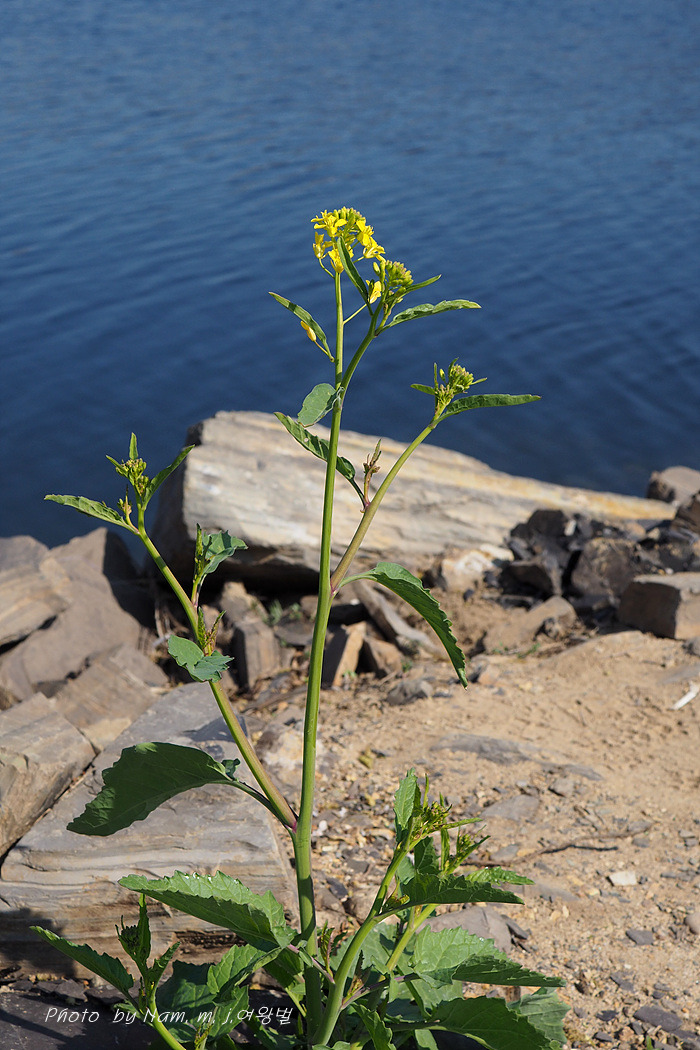 갓이 야생으로 번져서 강수변에 노랗게 꽃을 피우고 있다.