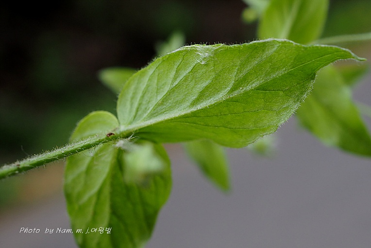 가장자리에 짧은 털이 있으며 양면 잎맥에 부드러운 털이 있다.