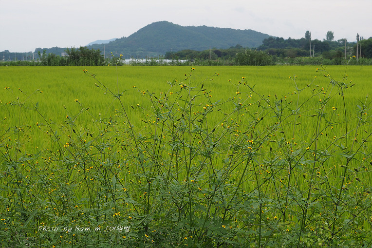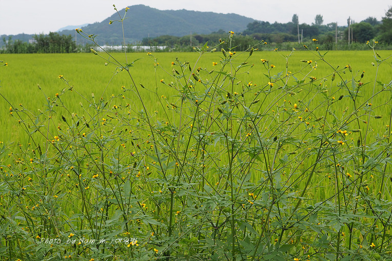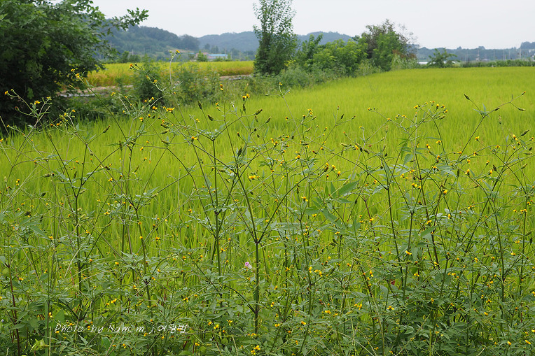 논 주인이 풀베기 작업을 하지 않아서 도로변의 도깨비바늘이 멋진 그림을 그리고 있다.