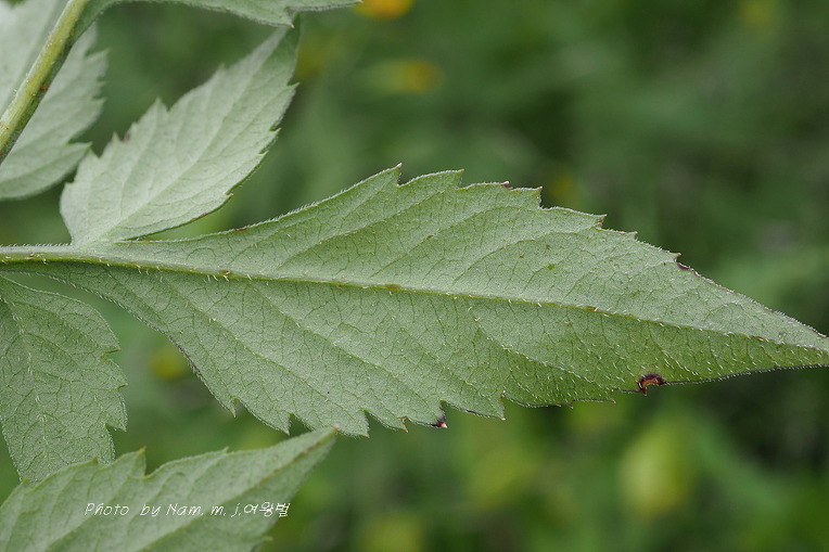 1~2회로 갈라지며 잎에 거치가 더 많고 털도 제법 밀생한다.......