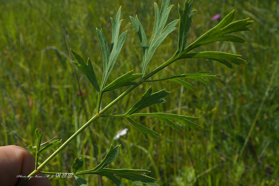 뿌리잎은 모여나고 짧은 잎자루가 있으며 2~3회 깃꼴로 갈라진다.