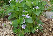 낚시제비꽃계열로 줄기가 있으며 암술주두가 고부라진다.
