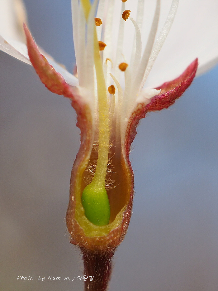 꽃자루와 꽃받침, 암술대에 털이 있다.