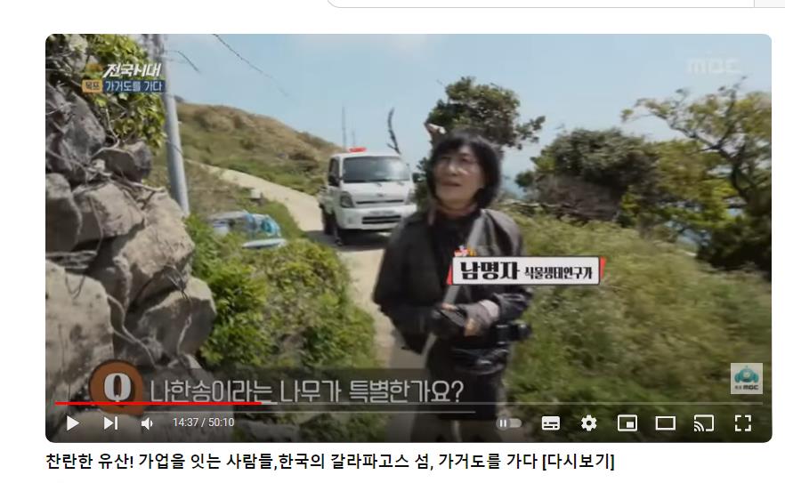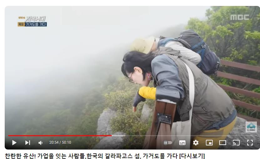 12분 30초 부터 22분 15초 까지 10분간 가거도 영상이 나온다.