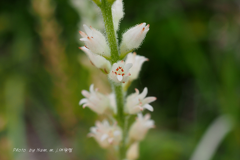 화피 표면과 꽃자루, 꽃대에 샘털이 밀생한다.