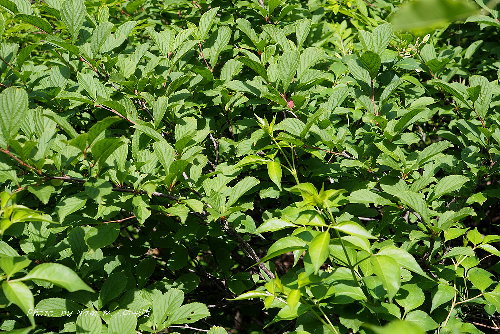 석회암 지대 산지의 양지바른 곳에 나는 낙엽 활엽 떨기나무로 높이 2~3m 정도로 자란다.
